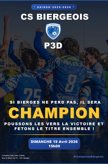 Fondé en 1991, le Cercle Sportif Biergeois est une ASBL ancrée dans la vie locale à Bierges (Wavre), au 70 rue du Blanc Try.